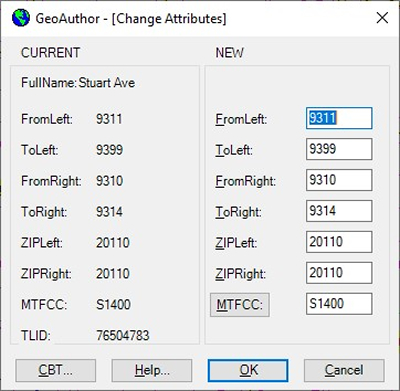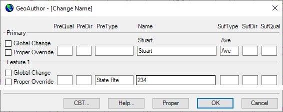 The art of conflation is a term borrowed from the study of literature. It is the process where combining two variant texts into a new one. GIS technology is more modern than other disciplines. Thus, borrowed names determine other disciplines. It has been said the silver tuner for mapping is "conflation". To this end, the people at ICW have spent a great amount of time and energy developing specific tools to assist with the next decade's base map. Tools such as Change Name, MultiUpdate, Change Attribute, and Trace along with other numerous features are wrapped up in your software. Following is a portion of the full dialog box from the Change Name. This feature is an example of updating one or all of the name(s) in the database. The Global Change and Proper Override features allow one to refine feature options. ![]()