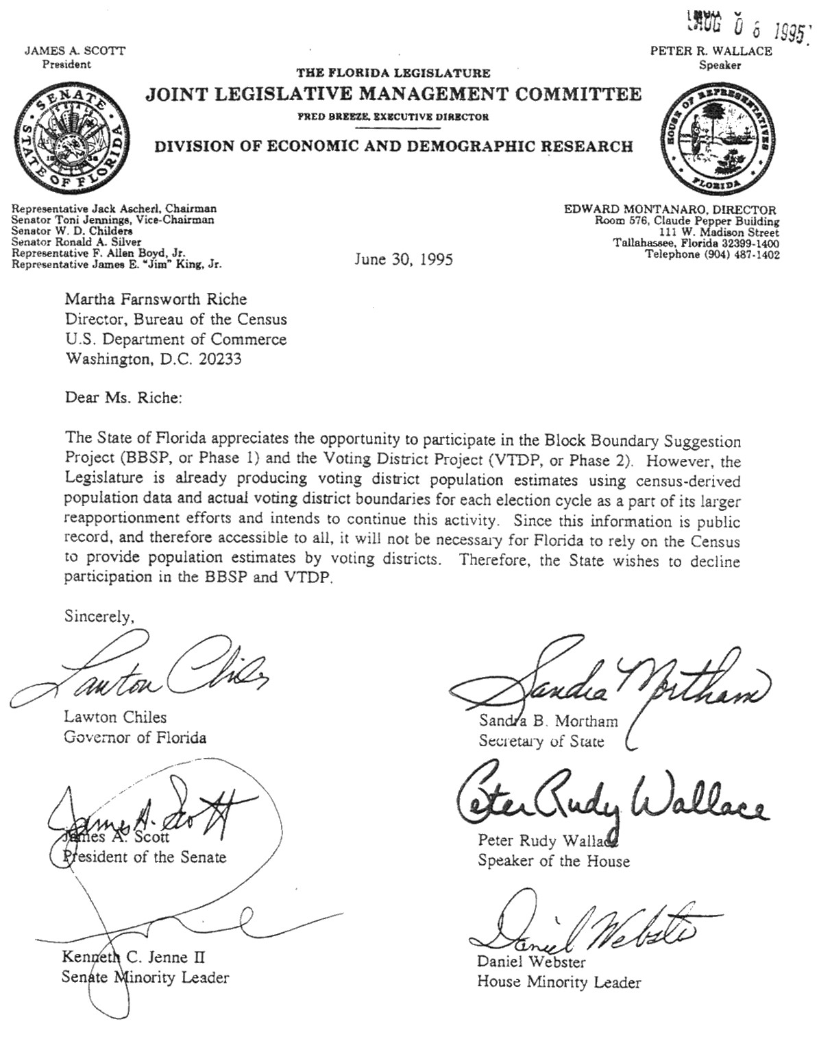 Attached is a copy of the letter Florida leaders signed declining participation. Despite attempts in 1996 by the people at ICW to prevail upon the leadership to allow SOE’s to participate, the policy expressed in the letter was final.